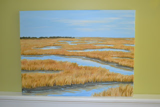 Happy birthday Daniel- For a friend who BARELY lost another marsh painting at a silent auction. Again, this scene was the product of many memories in the marsh, rather than a photograph. Sounds like I need to go have a marsh photo-shoot. 18x24 acrylic on stretched canvas. September 2012.
